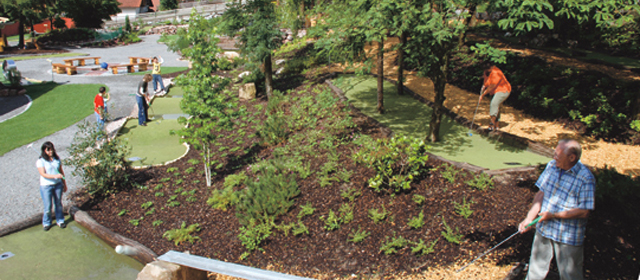 Adventure Mini.Golf ist die gelungene Kombination von Natur, Ambiente, Sport und Abenteuer. Auf 3200 Quadratmetern erleben Sie in wunderschöner Umgebung 18 Bahnen, die vor allem regionale Gegebenheiten thematisieren oder als Vorbild haben.